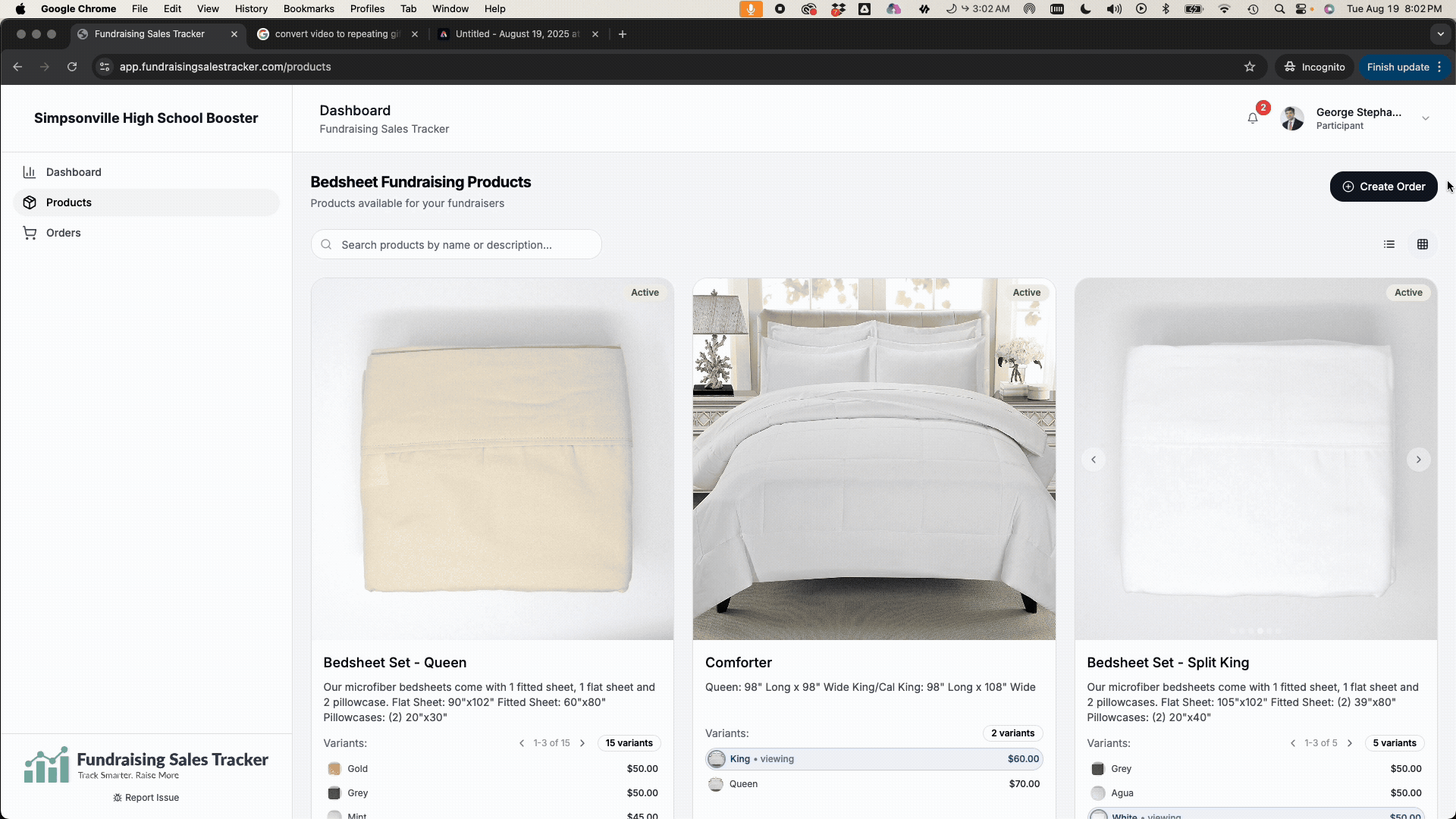 After your customer has reviewed your product offerings and they know what they want, click “Create an Order”